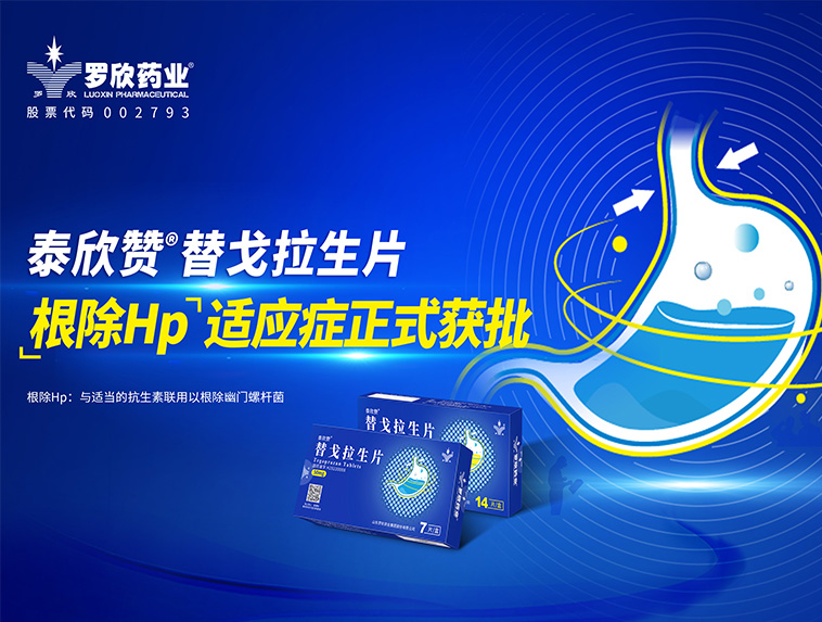 羅欣藥業(yè)創(chuàng)新藥替戈拉生片(商品名:泰欣贊?)新適應(yīng)癥“與適當(dāng)?shù)目股芈?lián)用以根除幽門(mén)螺桿菌”獲批上市
